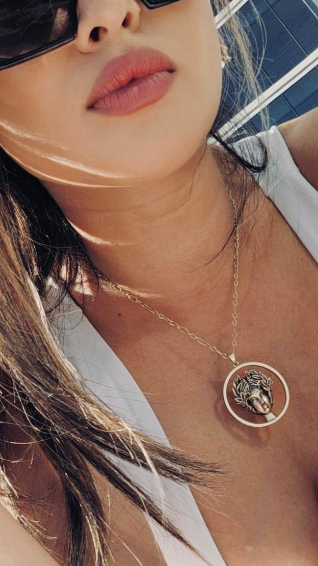 This pendant showcases Sappho's timeless visage, exuding confidence and grace. This uncommon piece is as distinctive as Sappho herself.
