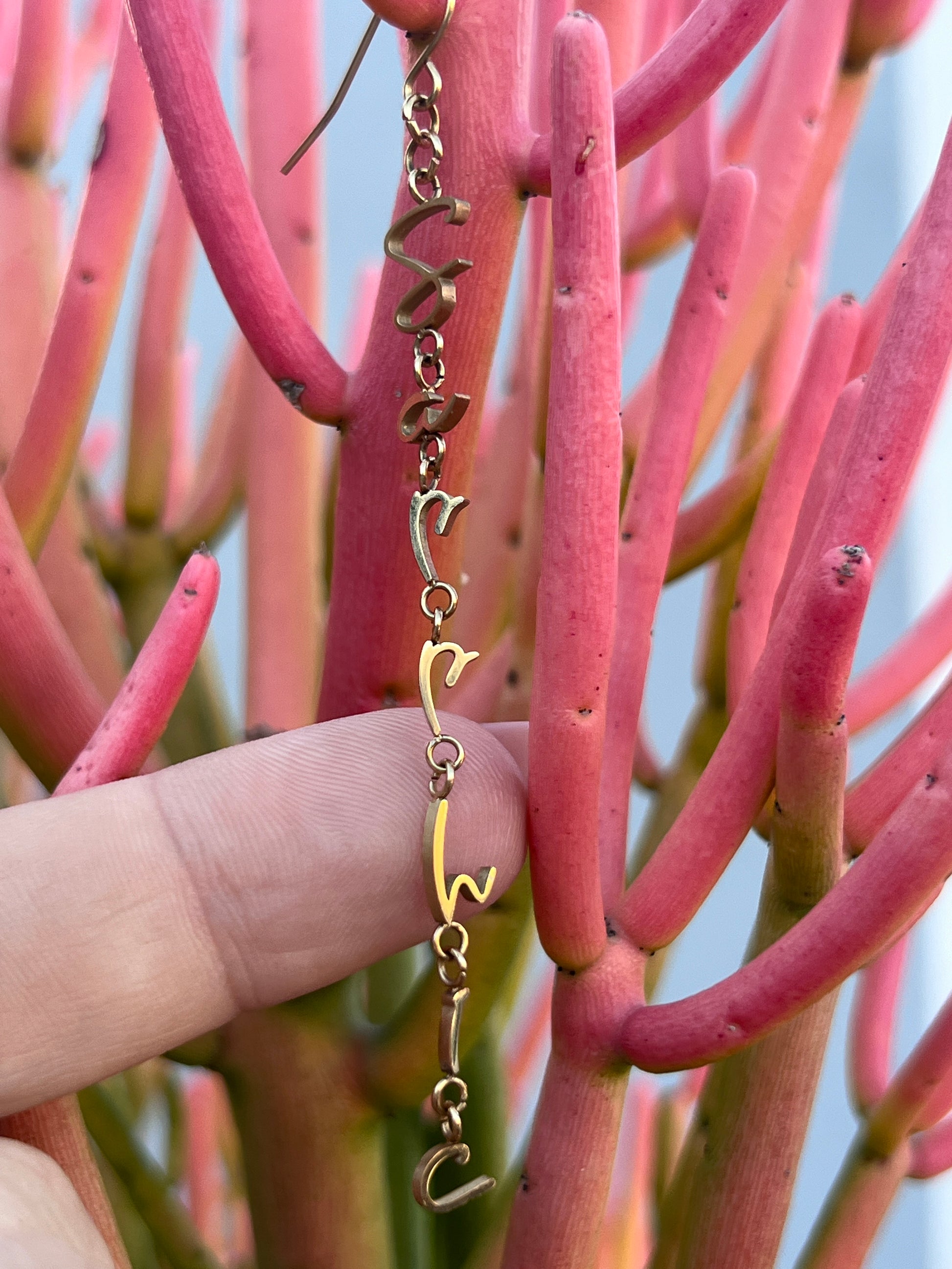This unique set is designed to empower and celebrate the distinctive identity in all of us, regardless of how we present. Each set features a striking asymmetrical design: one earring adorned with a radiant star symbolizing resilience and strength, while the other elegantly spells out "Sapphic," a subtle yet powerful declaration of pride and identity. These earrings serve as a meaningful way to express your authentic self in a world where visibility is often overlooked. Illuminate your journey with our Stars and Sapphics earring set and shine brightly with pride.